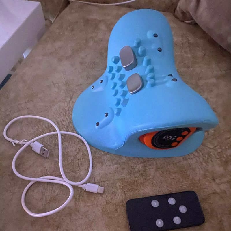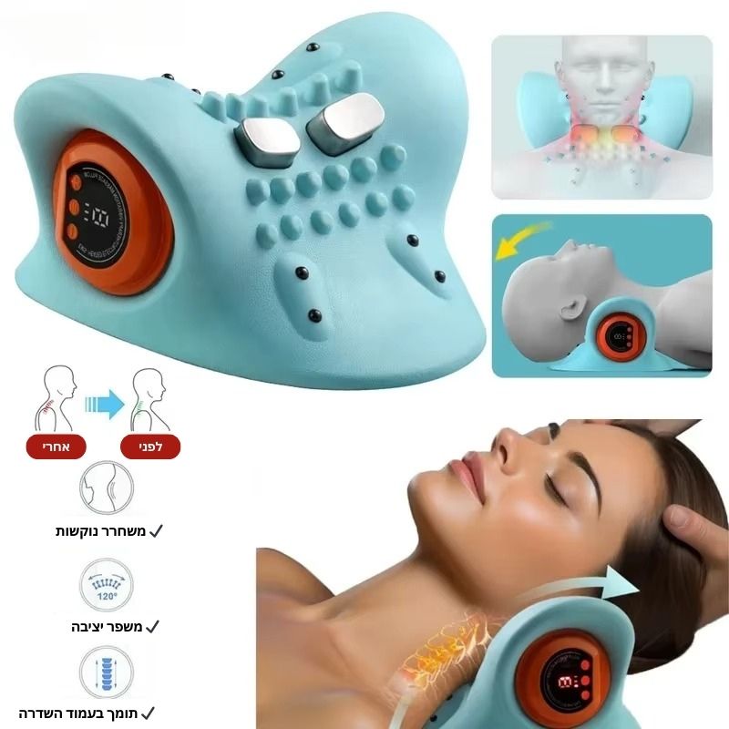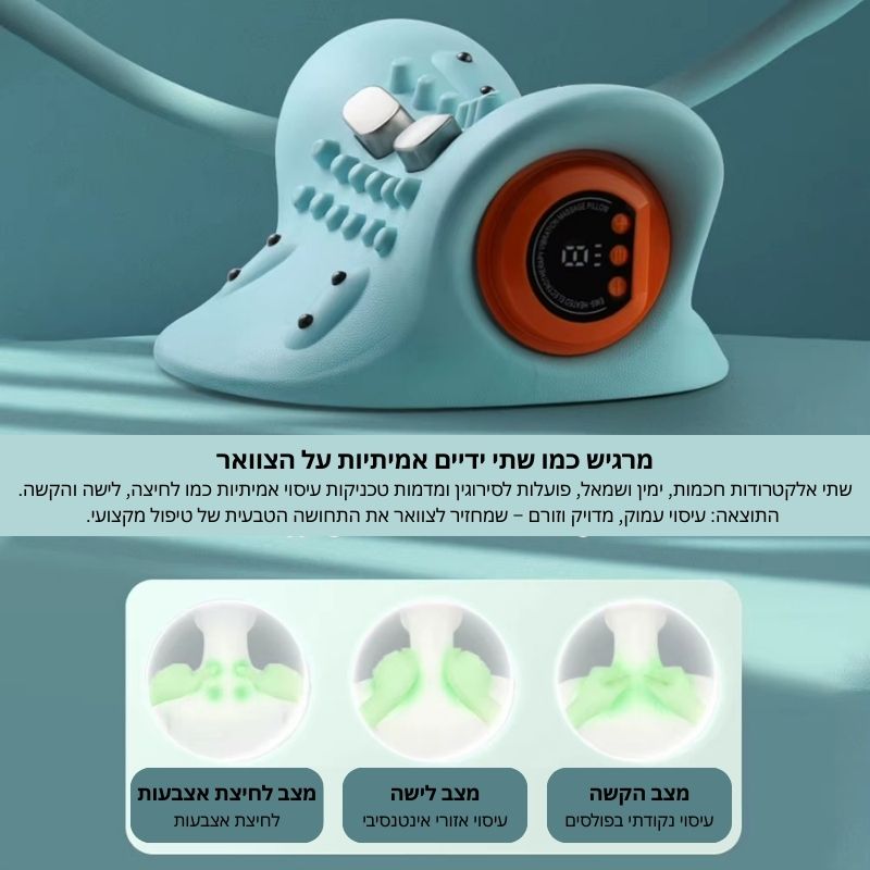 הכרית משלבת עיסוי EMS, חימום ומתיחה צווארית חכמה.